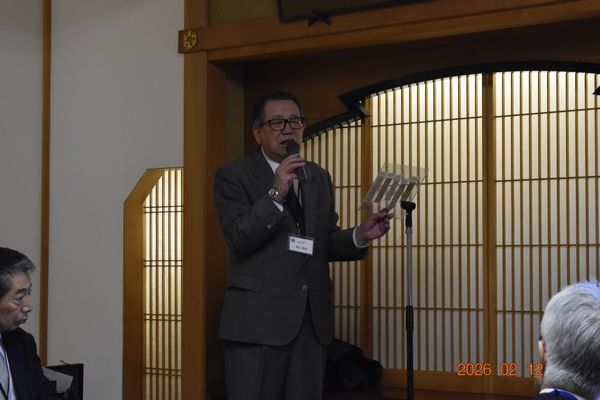 終了後、長髙様の挨拶と山崎会長の挨拶があり、場所を2階に移して、横田謙治さん(新規会員)の「福岡藩贋札事件」と題する講話がありました。お父さまの遺品を整理する中で、九州大桧垣教授の新聞の切り抜きが出てきたことから、福岡藩の歴史特に古銭に興味を覚えたとか。